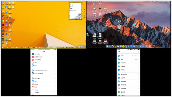 使用投影機的四分屏功能,一邊
