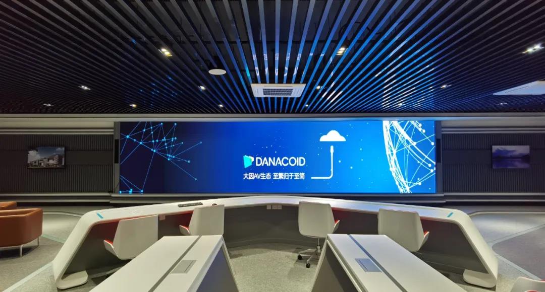 一樓大廳約20平的電子指揮屏采用了DANACOID LED智慧云屏,主要用于松江融媒體中心宣傳片播放、信息發(fā)布等用途,通過(guò)DyneCloud分布式系統(tǒng),分布于松江融媒體中心各處的信號(hào)源都可方便地推送至一樓大廳大屏顯示。