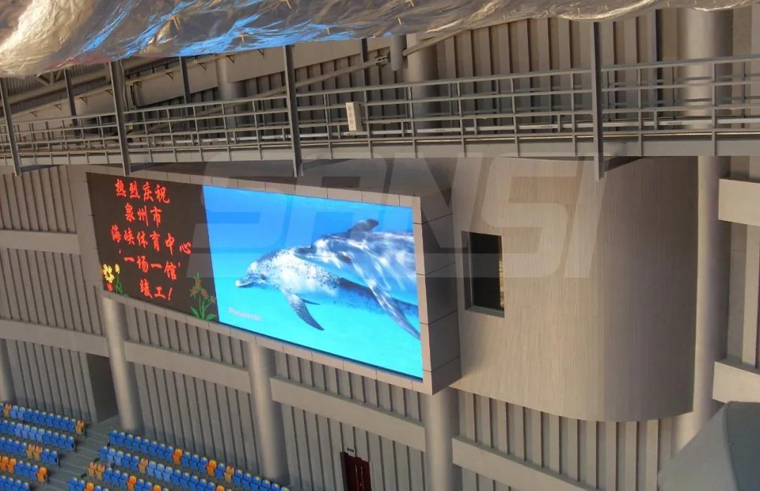 上海三思為福州海峽奧林匹克中心供應(yīng)了近800㎡的LED顯示屏,其中涵蓋176㎡的室內(nèi)斗型屏,該屏可以垂直移動(dòng),上升下降隨意可調(diào),而且下層的小型斗型屏可收縮至大型斗型屏中,達(dá)到了良好的視覺效果。