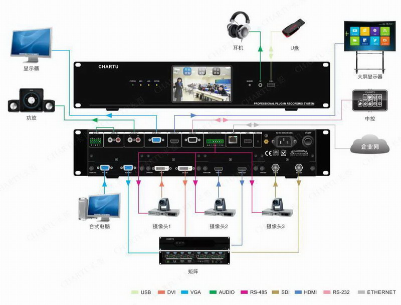 CHARTU長圖中控CT-3支持RS232、RS485、紅外、網絡等方式控制。