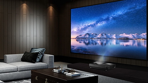 這款激光電視使用了超短焦技術(shù),僅需極短距離就能投射出120吋大屏幕,避免了麻煩的安裝和雜亂的布線,為客廳留下更多空間。