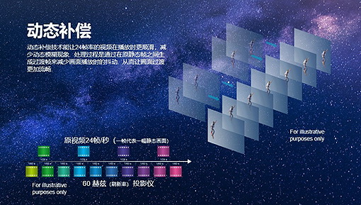 本機還擁有純凈動態(tài)偵測與動態(tài)平順補插技術(shù),解決了畫面拖影的問題,觀看高動態(tài)畫面時效果更佳。另外,得益于奧圖碼升級的Pure Motion功能,在播放動態(tài)畫面時效果更為生動立體,沒有拖影、掉幀等問題。