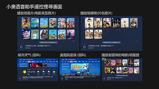 同時,它還內(nèi)置了專屬小奧語音助手,用戶只需在遙控器上按下語音鍵即可一鍵開啟AI語音,看什么電影、聽什么歌小奧都會在騰訊影音娛樂中為用戶搜尋到。