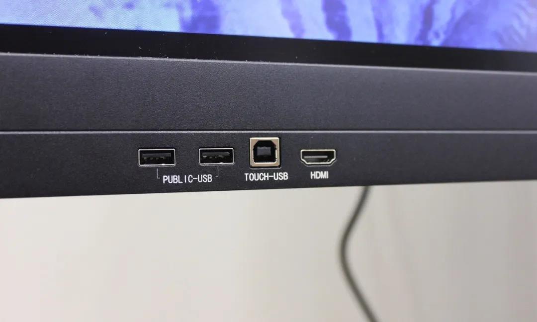 NETRIX智能交互平板NS751R,接口部分分別設(shè)計(jì)在了前部面板及背部側(cè)面,也是筆者關(guān)注過的類似產(chǎn)品中接口最全面、最豐富的一款智能交互平板產(chǎn)品。其中,前部面板接口為1個(gè)HDMI、1個(gè) Touch-USB接口及2個(gè)PUBLIC-USB接口。