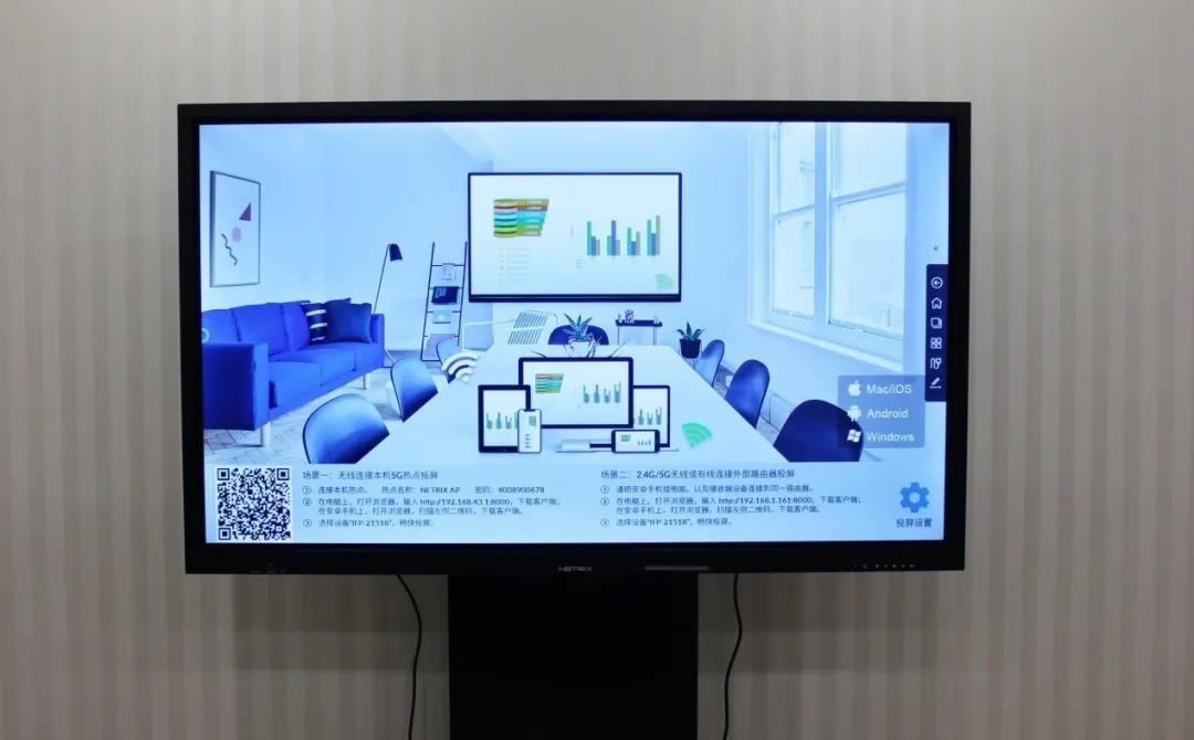 除了使用傳統(tǒng)的接口線纜連接外,會(huì)議用戶還可以通過選配USB無線投屏器,來適配多系統(tǒng)設(shè)備使用,如Windows、Mac OS系統(tǒng),而安卓及iOS系統(tǒng)也都可以通過無線的方式,完美兼容NETRIX智能交互會(huì)議平板進(jìn)行投屏展示。