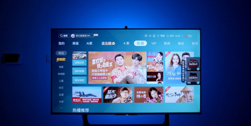 手機(jī)看電影沒感覺?沒關(guān)系可以投。老板突然發(fā)來巨大的Excel文件?手機(jī)電腦怎么看的舒服?這個也可以投。修改意見交流太麻煩,我就可以說“海信小聚,打視頻電話給老板”這時,位于頂部的升降廣角鏡頭就升了起來,這樣就可以在大屏上進(jìn)行視頻通話,在通話的過程中還可以將視頻窗口縮小,去干別的事。比如在K歌前先選個自己喜歡的歌單,或者先看一下今天的運(yùn)動計(jì)劃完成怎么樣啦。