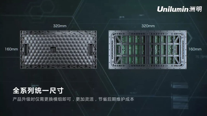 沒(méi)錯(cuò),雖然USF系列產(chǎn)品眾多,但他們的“個(gè)頭”都一樣,都擁有320mmx160mm的標(biāo)準(zhǔn)身材。這就意味著:你可以在現(xiàn)有USF系列產(chǎn)品基礎(chǔ)上,只需更換模組,即可按需求隨意升級(jí)為其他任一USF系列產(chǎn)品,而不用擔(dān)心現(xiàn)有的箱體、鋼結(jié)構(gòu)不適配,這將大大節(jié)省后期維護(hù)成本。