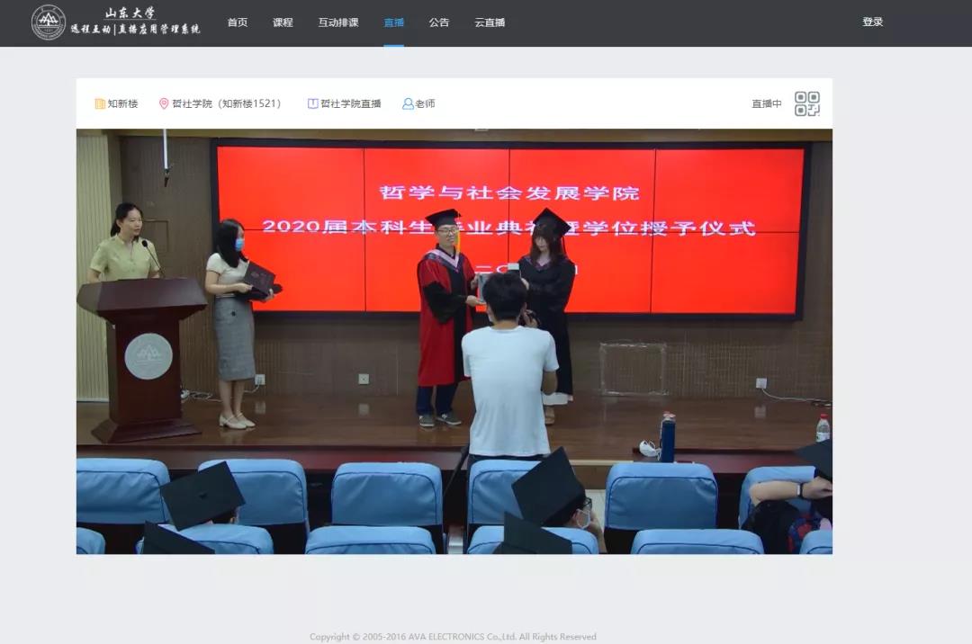 山東大學(xué)2020年本科生畢業(yè)典禮暨學(xué)位授予儀式,全程采用一校三地連線直播的形式舉行。全體畢業(yè)生分別在主會(huì)場(chǎng)、分會(huì)場(chǎng)或通過(guò)奧威亞云直播平臺(tái),共赴畢業(yè)盛典。