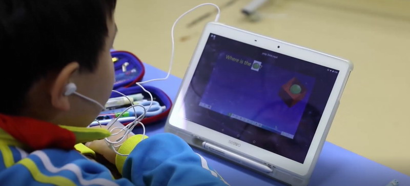 一、學(xué)生自學(xué)打頭陣:本節(jié)課著重講解英語中6個主要方位介詞,張老師沒有采取傳統(tǒng)的“老師講、學(xué)生聽”的方式,而是先讓學(xué)生自主學(xué)習(xí)。張老師課前在教師空間提前給學(xué)生推送了知識點相關(guān)的微課視頻,學(xué)生自覺帶上耳機,一邊在平板上觀看微課視頻,一邊大聲跟讀,練習(xí)發(fā)音技巧。