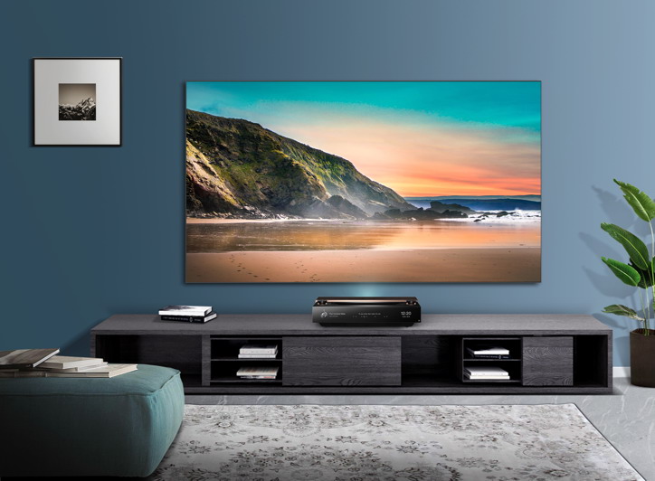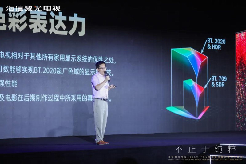 這臺(tái)型號(hào)為100L9-PRO的激光電視,采用RGB三基色全色光源架構(gòu),色彩純度極高的三原色光源使這臺(tái)激光電視的色域覆蓋達(dá)到DCI-P3電影色彩標(biāo)準(zhǔn)的151%。這是最接近人眼色彩識(shí)別范圍的產(chǎn)品,也是目前唯一達(dá)到超高清色域標(biāo)準(zhǔn)BT.2020的電視產(chǎn)品。