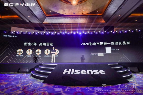 6年來(lái),海信激光電視解像度從1080P到2K、4K,再到雙色4K、全色4K;從單色光源到雙色光源,再到全色光源,海信激光電視年復(fù)合增長(zhǎng)率高達(dá)281%,進(jìn)駐別墅家庭就超過(guò)3萬(wàn)個(gè)。2019年,海信激光電視在80+市場(chǎng)占有率近40%,中怡康2020年1-6月線上線下整體推總數(shù)據(jù)顯示,彩電行業(yè)整體銷量同比下滑12.26%,海信激光電視銷量逆勢(shì)上漲33.6%,成為彩電市場(chǎng)唯一正增長(zhǎng)的產(chǎn)品品類。