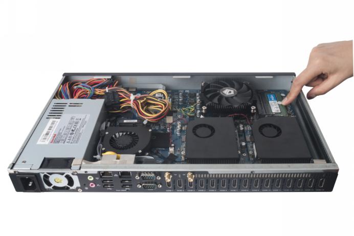 拿到杰和G1568整機,重量上讓人有些意外,拙樸的全金屬機殼沒有比家用主機輕很多,對于復(fù)雜的安放環(huán)境,外殼擁有良好的承重能力;可以看到所有的折彎和卷邊,都進(jìn)行了倒角,不會有刮手和鋒利的感覺;在按鈕和接口的外觀上,杰和G1568延續(xù)了杰和科技數(shù)字標(biāo)牌產(chǎn)品一貫的高品質(zhì)要求,孔位、絲印、按鈕的質(zhì)量要求都非常考究,力求精確和平整;背部的15個HDMI輸出接口標(biāo)準(zhǔn)統(tǒng)一,表面鍍層十分亮眼,隱約嗅到一股“黑科技”的味道。