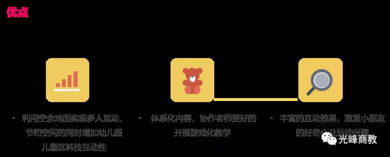 內容上主張輕教育,主張將“知識+運動+游戲體驗”深度結合,擁有以下眾多優(yōu)點,使孩童在輕松愉悅的氛圍中獲得知識,寓教于樂。