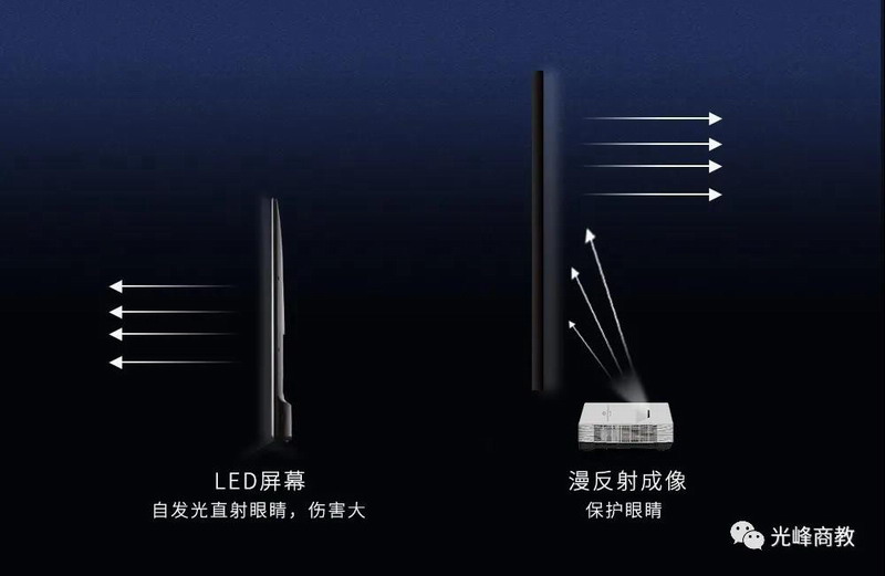 光峰幼教方案均由光峰激光投影機構成,激光投影方案采用漫反射原理,光峰經(jīng)由墻面或者地面反射和折射進入小朋友眼中,與太陽光入眼規(guī)則一樣。光線柔和不刺眼,能緩解用眼疲勞,有效防控近視。寓教于樂與保護視力兩不誤。