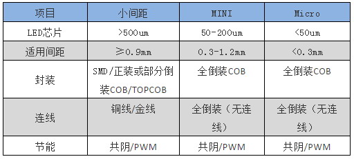 小間距、Mini、Micro相關(guān)產(chǎn)品對比