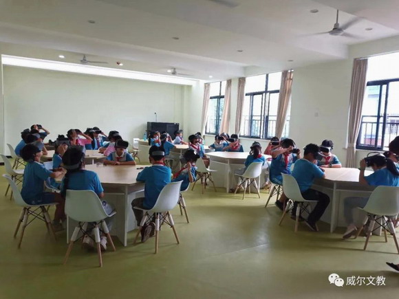 在威爾文教打造的VR教室里,VR頭盔+中控系統(tǒng)+充電車(chē),充滿(mǎn)著濃濃的科技感。進(jìn)入VR教室,學(xué)生們的興趣已然被調(diào)動(dòng)起來(lái)。而且,與以往獨(dú)立的課桌不同,VR教室配備八角桌,可以讓學(xué)生們以小組的形式進(jìn)行近距離地討論和交流。