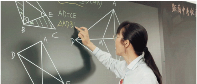 在講解幾何圖形時,何老師讓AB班的同學上臺,寫出不同的解法!巴郏∵有這樣的方法!”B班同學寫出更好的解析,兩邊的同學不約而同鼓起了掌。