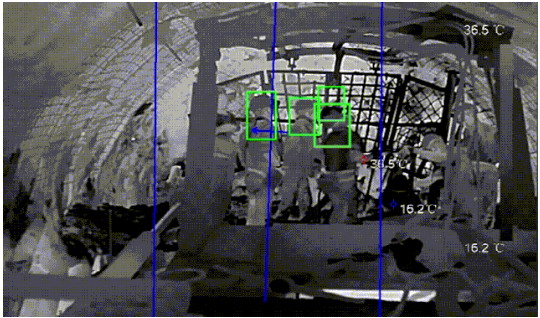井巷、掘進(jìn)工作面是事故的高發(fā)地,為有效防范和遏制各類事故發(fā)生,產(chǎn)品可對熱成像通道與可見光通道設(shè)置絆線及規(guī)則區(qū)域,觸發(fā)規(guī)則的目標(biāo)進(jìn)行區(qū)分統(tǒng)計,對于超出標(biāo)準(zhǔn)作業(yè)人員要求的情況,聯(lián)動本地語音報警提醒,同時將報警信息上報到地面指揮中心,實現(xiàn)事中遠(yuǎn)程管理與事后追溯有據(jù),保障作業(yè)過程規(guī)范化。