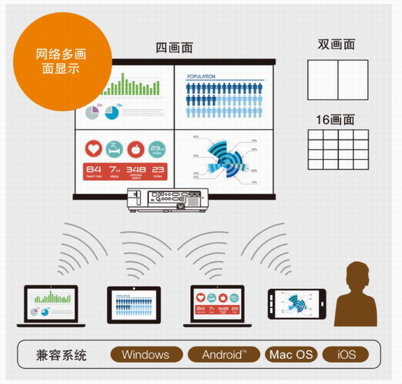 此外,CE5500HL在操作上的智能化和便捷性也讓河西學(xué)院師生稱贊不已。CE5500HL系列投影機(jī)擁有NEC最新的網(wǎng)絡(luò)多畫(huà)面顯示功能,支持多達(dá)16 個(gè)畫(huà)面的同時(shí)顯示,這對(duì)于大學(xué)課堂內(nèi)容的多畫(huà)面同步分享和對(duì)比演示場(chǎng)景非常適用。通過(guò)MultiPresenter軟件的無(wú)線投屏功能,讓影像呈現(xiàn)方便快捷。垂直和水平梯形校正功能,讓CE5500HL能夠輕松應(yīng)對(duì)多種復(fù)雜的安裝環(huán)境。