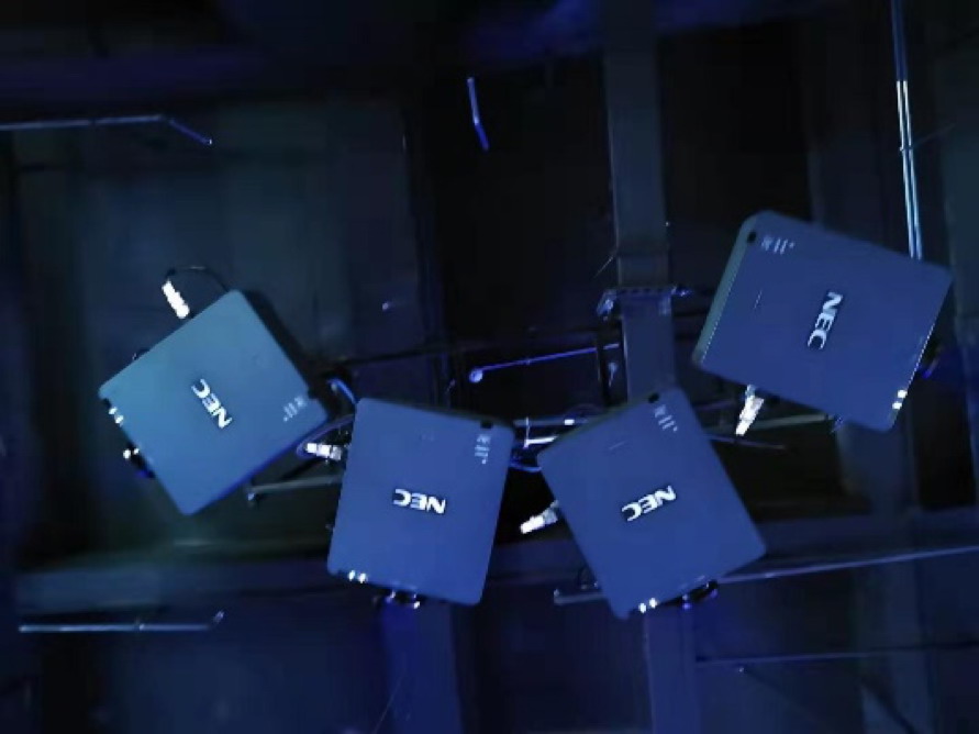 遁入極具吸引眼球的神秘量子世界,使用15臺NEC PA803UL+(8000流明、WUXGA分辨率)液晶激光投影機,以CAVE投影方式打造的沉浸式立體空間,織就起一張縱橫寰宇的天地網(wǎng)。不同于單臺投影畫面,大規(guī)模融合畫面若存在色差、亮度不一致的問題,將很明顯一眼就被看出來。NEC投影機發(fā)揮自身亮度和色彩高度統(tǒng)一的優(yōu)勢,保證了四個投影面的亮度和色彩均勻一致。而PA803UL+ 內(nèi)置的邊緣融合功能進(jìn)一步將融合帶進(jìn)行完美融合,讓整體畫面沒有任何割裂感。