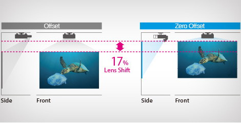 該鏡頭可以為用戶有效的節(jié)約安裝空間,鏡頭投射比為0.35,基于鏡頭零偏移量和前置散熱設計,只需距離約76 厘米,即可投射100英寸(16:10) 的影像, 同時結合鏡頭移位(垂直+17%,水平±10%)的功能,使之在狹小空間的情況下更為易用。