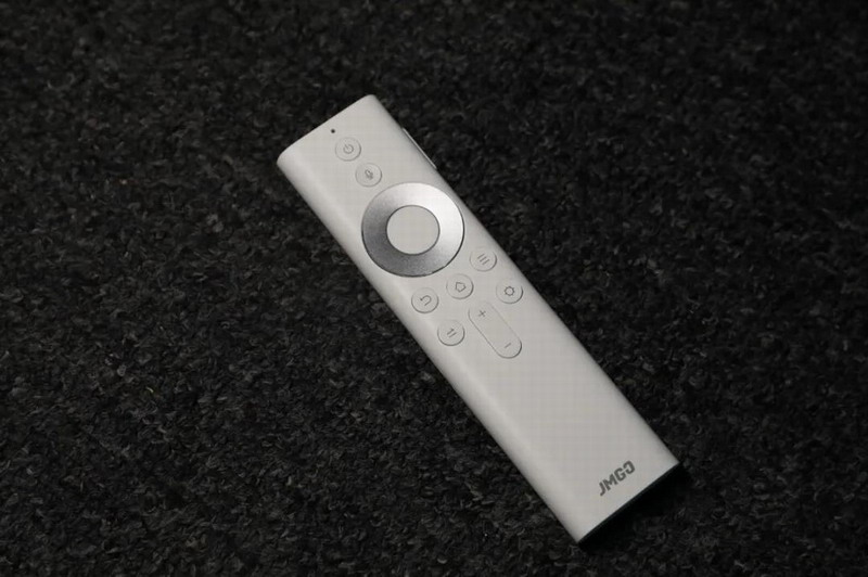 投影儀主機(jī)+遙控器+電源線+電源適配器+說明書,構(gòu)成了整套產(chǎn)品。投影儀主機(jī)外型圓潤,光滑的鏡面機(jī)身上為4個(gè)拾音孔,邊緣印著堅(jiān)果logo“JMGO”,沒有一絲多余的累贅設(shè)計(jì)。鏡頭方面,同樣采用了LED燈泡,800*ANSI流明的投影亮度,與1920*1080全高清的物理分辨率,參數(shù)在主流旗艦配置里雖中規(guī)中矩,但已完全夠用。
