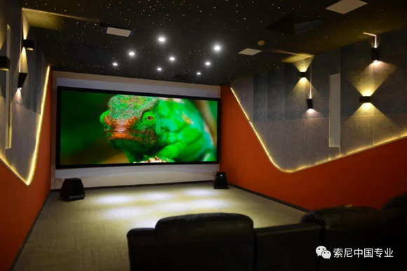 其中,客廳影院和私人影院分別采用了索尼的VPL-VZ1000 4K超短焦激光投影機、X8500F系列4K商用電視機和VPL-VW578 4K投影機,搭配Merdian(英國之寶)的音響系統(tǒng)所組成。