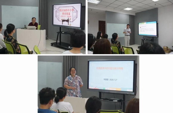 此次“特訓(xùn)營(yíng)”活動(dòng)還請(qǐng)到合肥市第九中學(xué)許祖國(guó)副校長(zhǎng)、芙蓉小學(xué)彭正校長(zhǎng)、合肥市四十五中信息技術(shù)宋蓓蓓老師跟大家面對(duì)面互動(dòng)交流。通過(guò)許祖國(guó)、彭正兩位校長(zhǎng)的分享,大家對(duì)于學(xué)校管理有了進(jìn)一步理解,除了先進(jìn)的管理方法和理念,也共同探討了當(dāng)下智慧課堂的現(xiàn)狀與需要,了解該如何加強(qiáng)中小學(xué)信息化裝備建設(shè)的對(duì)策,并做好服務(wù)保障。宋蓓蓓老師的分享,讓大家了解到現(xiàn)階段常見(jiàn)的學(xué)校教研活動(dòng)形式,學(xué)習(xí)研課磨課的意義及相關(guān)活動(dòng)中存在的主要問(wèn)題與解決策略。此次培訓(xùn)內(nèi)容不僅讓大家拓寬了教研思路,也強(qiáng)化了對(duì)于學(xué)校教研管理需求的理解。
