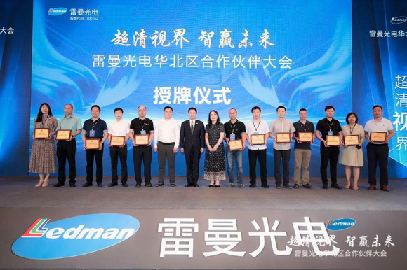 簽約儀式在座來賓共同見證下順利結(jié)束,李漫鐵董事長為雷曼的戰(zhàn)略合作伙伴,金牌、銀牌代理商進(jìn)行授牌,他感謝了各位合作伙伴多年對(duì)雷曼的信任和支持,并表示雷曼光電將不斷提供更加優(yōu)質(zhì)的產(chǎn)品和服務(wù),與大家共同實(shí)現(xiàn)更高的發(fā)展目標(biāo)。