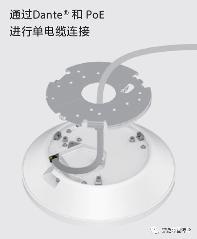 MAS-A100支持Dante®和PoE,可通過(guò)一根電纜與第三方系統(tǒng)連接。