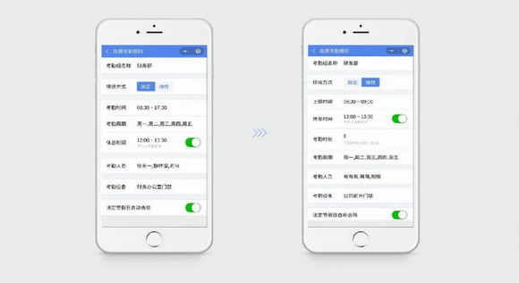 針對(duì)不同員工的上下班時(shí)間進(jìn)行精細(xì)化打卡分類設(shè)置,固定考勤要求在規(guī)定的時(shí)間節(jié)點(diǎn)(如上班時(shí)間點(diǎn)前、下班時(shí)間點(diǎn)后)打卡,彈性考勤則支持靈活的打卡時(shí)間點(diǎn)設(shè)置,只需要在崗時(shí)間符合考勤時(shí)長(zhǎng)即可,滿足不同部門的考勤需求。