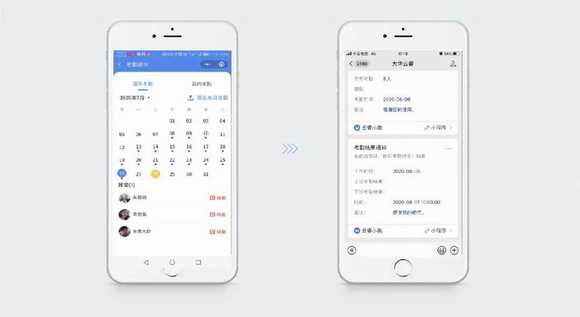 云睿小微小程序支持管理員和員工即時(shí)查看考勤異常,核實(shí)員工工作情況。也可以通過大華云睿微信公眾號(hào)將考勤信息主動(dòng)推送給管理員和員工,若出現(xiàn)考勤異?梢约磿r(shí)申請(qǐng)復(fù)核。