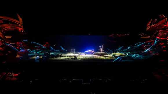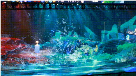 同時(shí),紗幕投影還拉近了觀眾和表演者之間的距離,使多媒體影像與表演者的舞美動(dòng)作相互交融,增強(qiáng)了光影的韻律和互動(dòng)性,讓虛擬影像也變得栩栩如生。