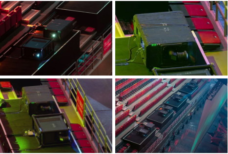 此次全息紗幕舞臺的投影系統(tǒng)全部采用了松下ET-D3LEU100C拐角鏡頭,由于觀眾席離舞臺較近,并且沒有合適的安裝點(diǎn)位,故投影機(jī)只能安置在觀眾席前側(cè)且面積狹小的空地上,這就意味著必須采用短焦鏡頭縮短投距。