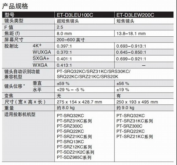 下面,讓我們看看松下ET-D3LEU100C、ET-D3LEW200C短焦鏡頭都有哪些優(yōu)勢?