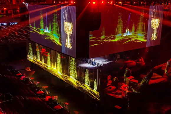 此次王者榮耀總決賽堪稱電影級布景,實(shí)景打造的王者峽谷,魔幻炫目的舞臺紗幕,還有360°動(dòng)態(tài)環(huán)繞巨幕播放比賽實(shí)況,打造虛擬與現(xiàn)實(shí)結(jié)合的視聽盛宴。