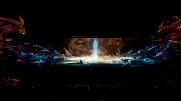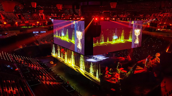 據(jù)了解,王者榮耀總決賽開幕式的舞臺采用了當(dāng)下最前沿的聲光電技術(shù)手段,利用全息紗幕配合投影打造亦真亦幻的舞臺特效,輕薄透光的紗幕不但增加了視覺的景深感和通透性,還巧妙的拓展了舞臺的空間層次,使投影畫面與紗幕更完美的融合。