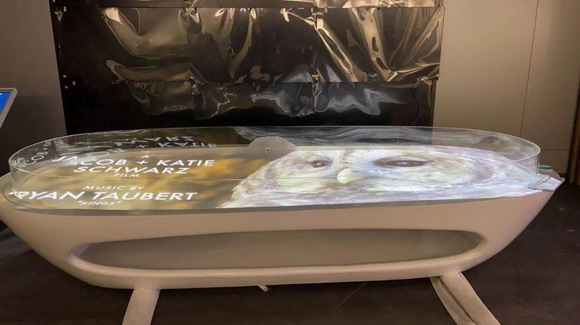 ▲沉浸空間:三面投影墻打造了一個(gè)完整、獨(dú)立的展示空間,摒除外界干擾,全身心沉浸其中,在視頻講解引導(dǎo)下,深入園區(qū)各個(gè)角落。