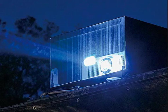 四臺(tái)松下PT-DZ780JB(中國(guó)型號(hào)PT-FDZ675CB)投影機(jī)將影像投射到道路上。360°靈活安裝。