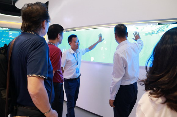 來訪嘉賓一行重點參觀了洲明科技總部展廳,實地考察了洲明行業(yè)指控中心解決方案、大數(shù)據(jù)可視化平臺、智慧城市“端+云”解決方案等一系列創(chuàng)新技術(shù)成果及應(yīng)用情況。洲明工作人員向來訪嘉賓介紹了洲明行業(yè)指控中心解決方案技術(shù)優(yōu)勢與落地應(yīng)用情況,并用iPad為嘉賓現(xiàn)場演示了UCM、UMI、Ucare等洲明顯控運維平臺軟件系統(tǒng)對大屏的完美操控。