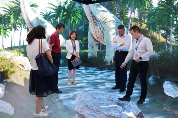 隨后,來訪嘉賓集體參觀了洲明小間距LED顯示屏、洲明智慧園區(qū)720°全景展示平臺、沉浸式虛擬仿真場景、動態(tài)人像識別系統(tǒng)、5G智慧桿、透明屏、3D顯示屏等創(chuàng)新成果。關(guān)積珍理事長一行通過聽取介紹和親身體驗,對洲明產(chǎn)品創(chuàng)新和設(shè)計創(chuàng)新的能力給予了高度評價,并對洲明LED顯示技術(shù)優(yōu)勢與成熟應(yīng)用表示贊賞。