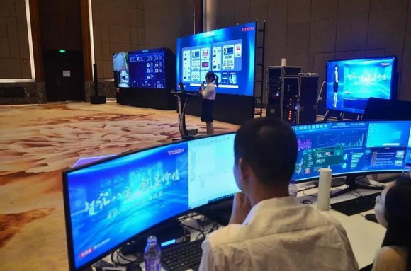 在巡展現(xiàn)場,嘉賓們感受到了威創(chuàng)產(chǎn)品的新氣象。威創(chuàng)在本次巡展展示了COB小間距LED、三基色激光DLP顯示單元、一體化坐席管理系統(tǒng)、倒裝COB前維護(hù)觸摸一體機(jī)和可視化解決方案等全線軟硬件產(chǎn)品,并重點(diǎn)演示了智匯融合平臺(tái)-ICVP的五大功能。