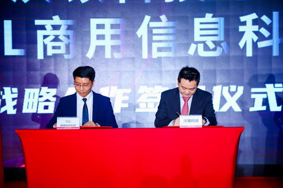 沃頓科技楊劍君先生&TCL商用信息科技代表簽約現(xiàn)場