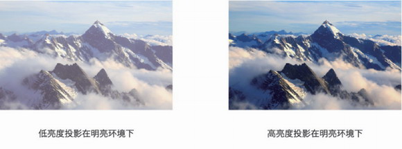 不同亮度投影在明亮環(huán)境下的呈現(xiàn)效果