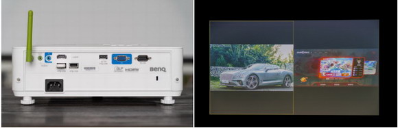 看更全準(zhǔn)備,明基E582不僅在機(jī)身后側(cè)集成了精簡但必須的接口,更是支持iOS/macOS/Android/Windows的無線投屏,甚至可以四個畫面同時投屏,不限系統(tǒng)不限設(shè)備,想投就投。