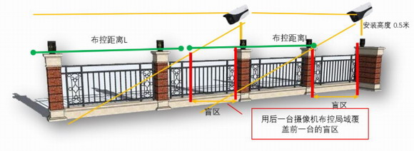 圍墻上立桿≥0.5米,攝像機安裝在立桿上。