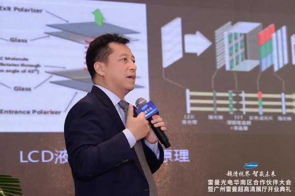雷曼光電董事長兼總裁李漫鐵致歡迎詞:“廣州是我的第二故鄉(xiāng),我在華南理工大學無線電專業(yè)度過了充實的四年,這段經(jīng)歷為后來我創(chuàng)立雷曼光電打下了堅實的基礎。廣州是國內(nèi)少數(shù)幾個將超高清作為城市級戰(zhàn)略的都市,大力推進“世界顯示之都”、國家超高清視頻應用示范區(qū)、國家超高清視頻產(chǎn)業(yè)內(nèi)容制作基地建設。雷曼光電作為全球領先的超高清LED顯示專家,從六年前開始專研COB先進技術,在Micro LED超高清顯示產(chǎn)品的研發(fā)和生產(chǎn)方面走在國際前列。Micro LED是公認的終極顯示技術,市場潛力巨大,我們希望與廣大客戶及合作伙伴朋友們共享商機,暢游藍海!