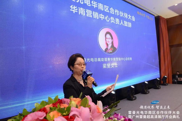 授牌儀式開始前,雷曼光電華南營銷中心總經(jīng)理梁斐致辭,她對遠到而來的各位合作伙伴表示感謝,雷曼堅持守信創(chuàng)新,提升產(chǎn)品品質(zhì),得到眾多客戶的支持與認可,得以高速發(fā)展,未來雷曼將以更飽滿的熱情與大家迎接新的挑戰(zhàn),共同推動產(chǎn)業(yè)進步與發(fā)展、共同分享產(chǎn)業(yè)發(fā)展紅利。