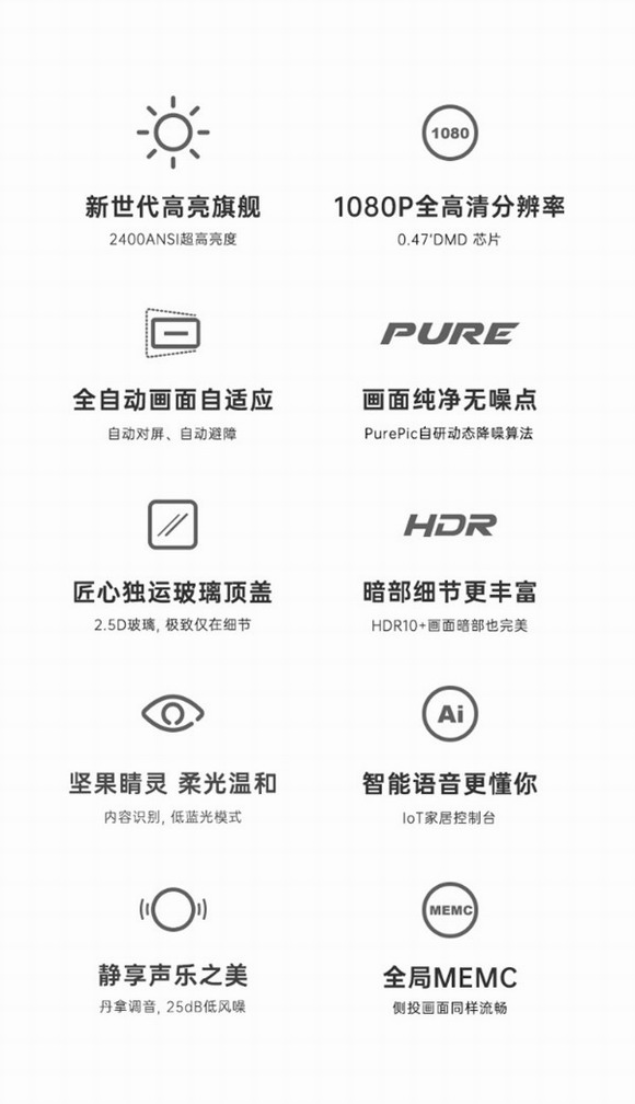 堅(jiān)果J10作為堅(jiān)果2020新世代高亮旗艦機(jī),具備全高清分辨率(1920*1080p),更高的亮度(2400ANSI)以及更強(qiáng)的AI智能交互體驗(yàn),更好的音質(zhì)效果,這些功能體現(xiàn)在硬件升級上,更體現(xiàn)在細(xì)膩的人機(jī)交互的軟件設(shè)計(jì)上,相信J10的升級會使用戶使用起來更加的舒適,安心。