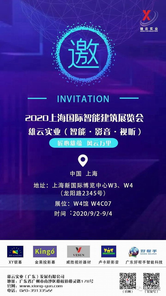 此次展會(huì)聚集上百家的品牌,雄云實(shí)業(yè)作為參展企業(yè)之一,展會(huì)期間攜旗下四大知名品牌:XY銀幕、kingo投影幕、VESUN視聽器材、盧卡斯影音,為到場(chǎng)嘉賓特別呈現(xiàn)專業(yè)優(yōu)質(zhì)產(chǎn)品。